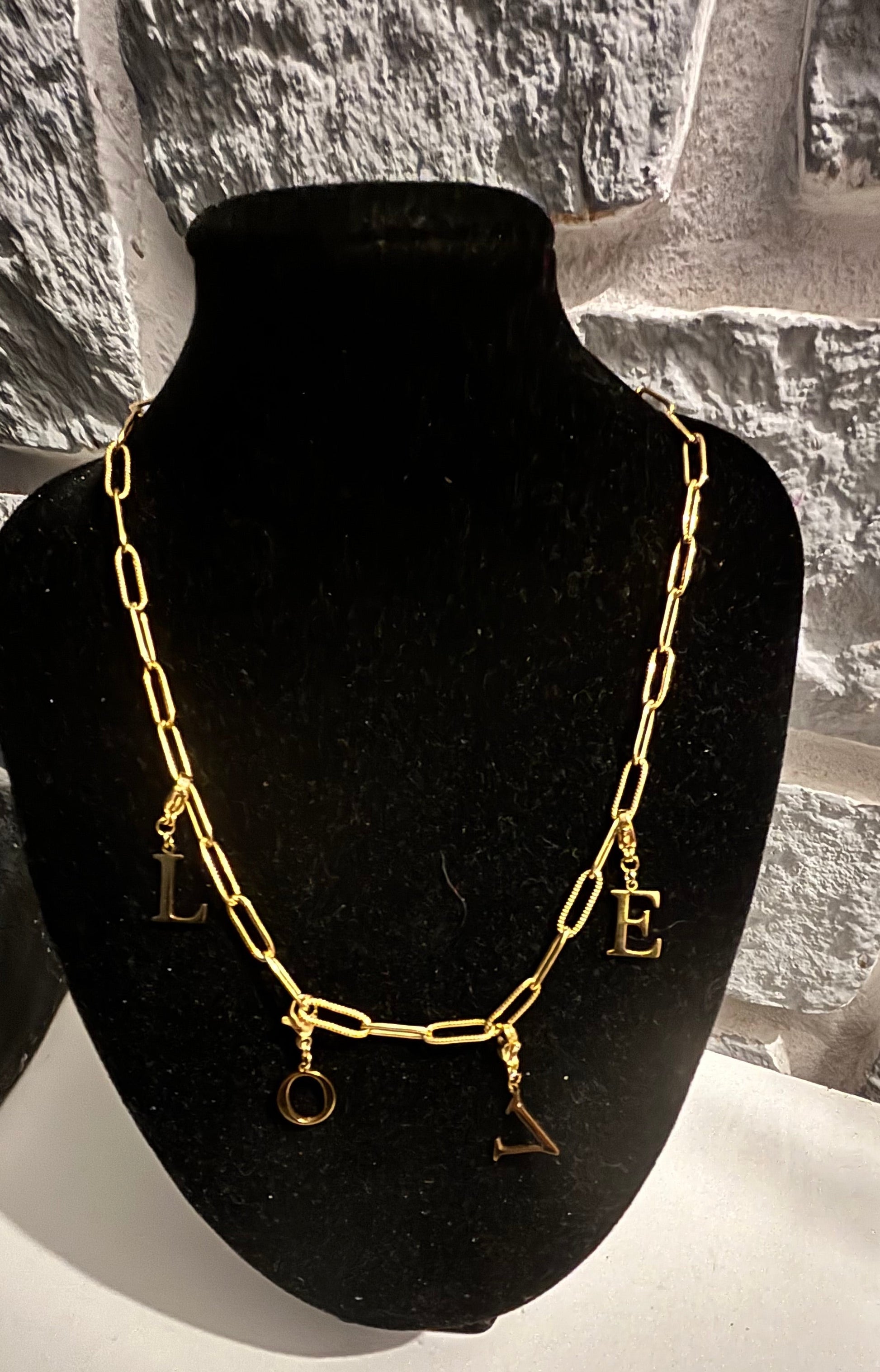 Chaîne message »LOVE » Chaîne Gros maillon, couleur or en acier inoxydable
